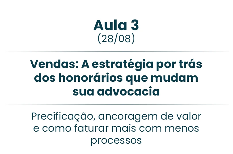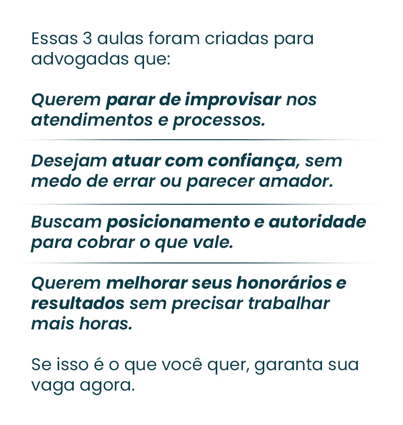 Se em 3 aulas você já pode transformar sua advocacia, imagine onde estará daqui a 6 meses aplicando tudo isso.