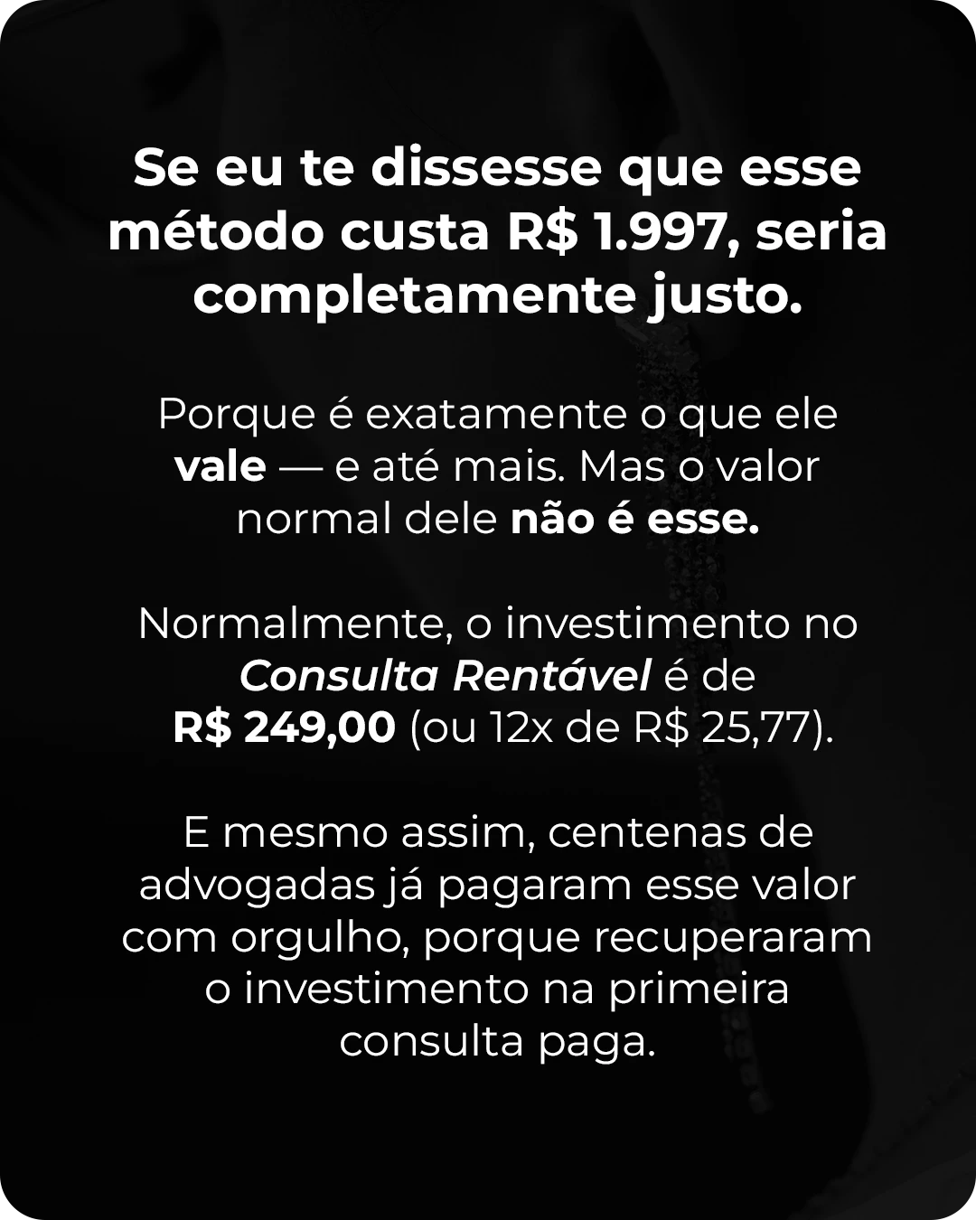 O método que te ensina, do zero, a transformar sua consulta no primeiro produto pago do seu escritório.